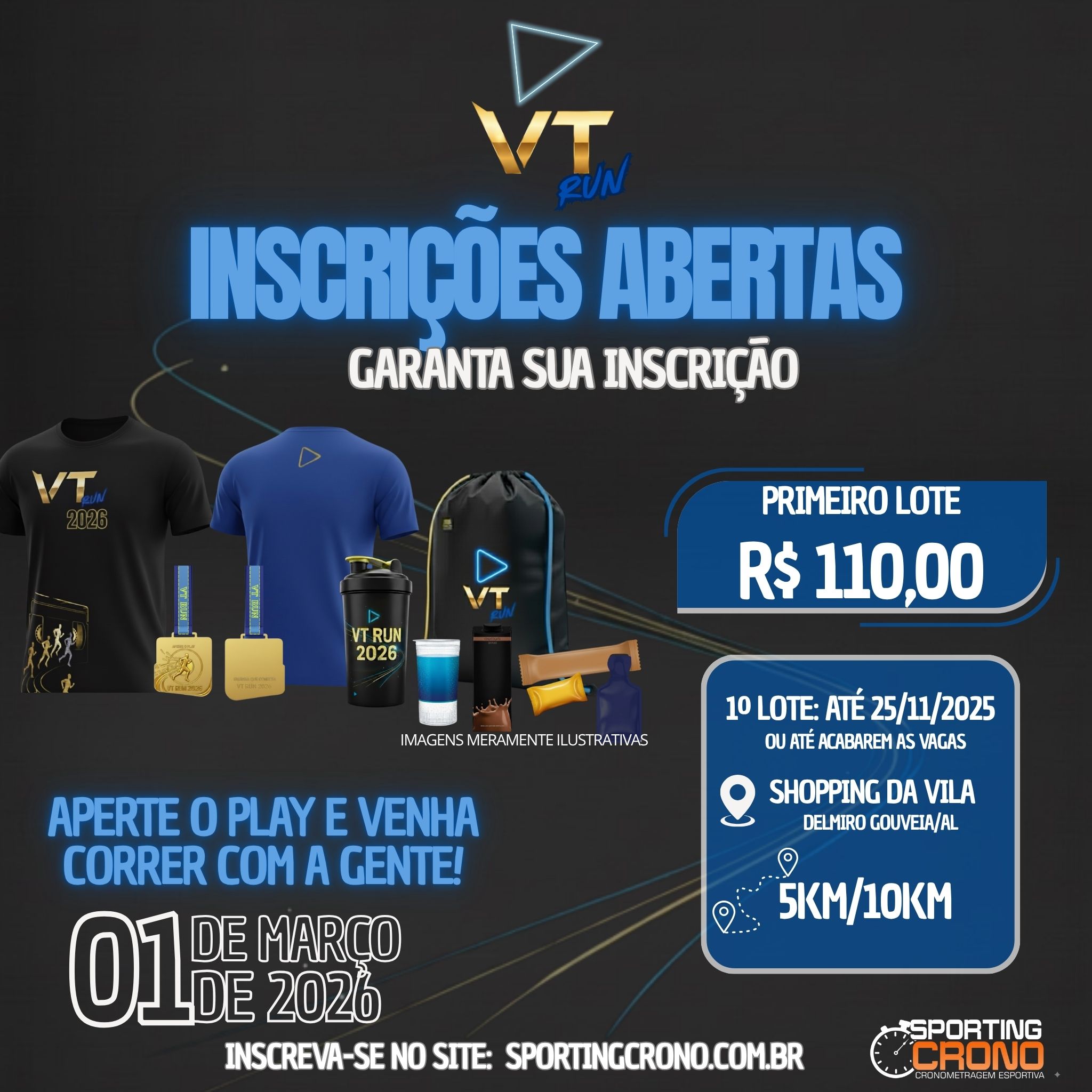 1ª CORRIDA VT RUN - 5KM E 10KM GERAL E FAIXA ETÁRIA